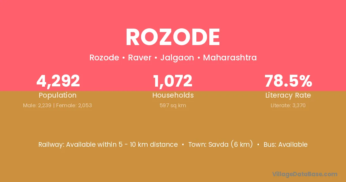 Savda (6 km) is the nearest town to Rozode village for major economic activities and is located approximately 6 km away.