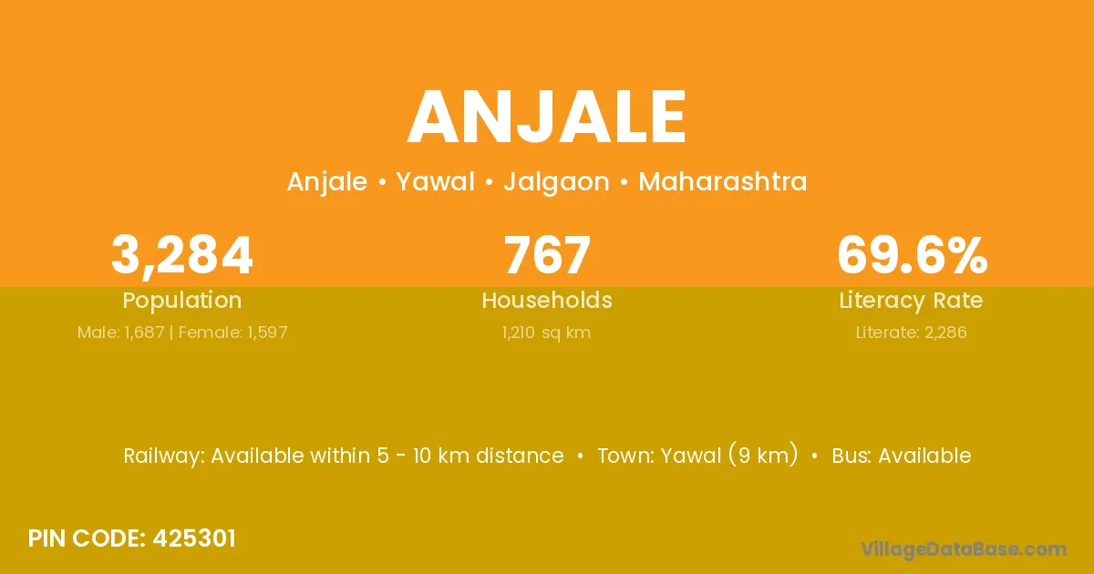 Yawal (9 km) is the nearest town to Anjale village for major economic activities and is located approximately 9 km away.
