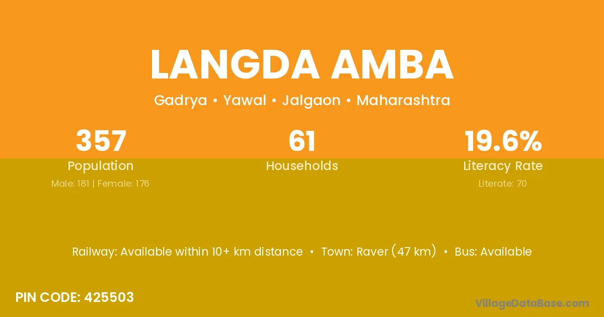 Raver (47 km) is the nearest town to Langda Amba village for major economic activities and is located approximately 47 km away.