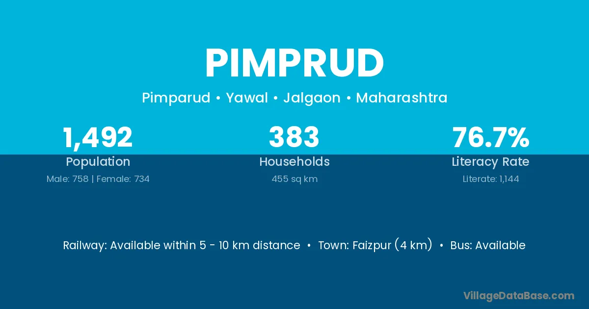 Faizpur (4 km) is the nearest town to Pimprud village for major economic activities and is located approximately 4 km away.