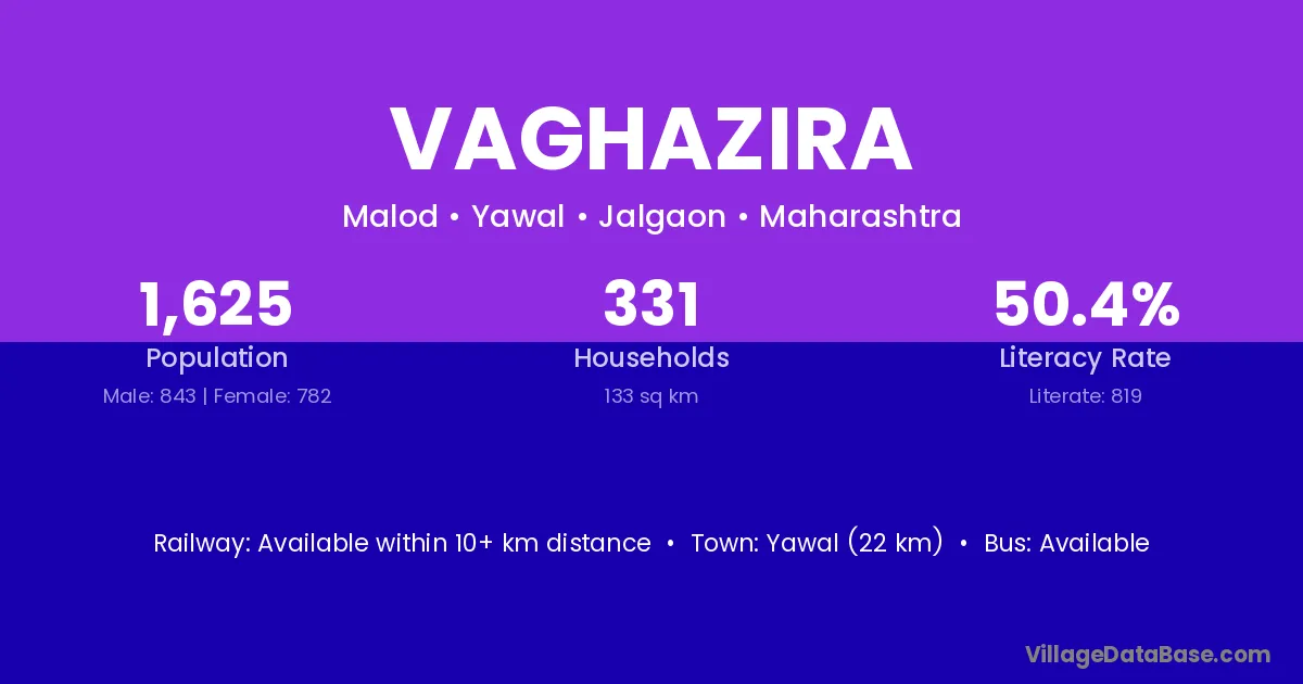 Yawal (22 km) is the nearest town to Vaghazira village for major economic activities and is located approximately 22 km away.