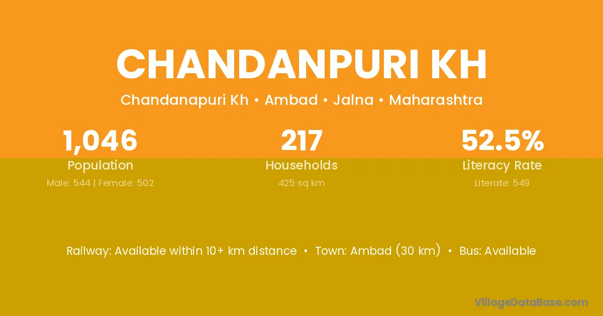 Chandanpuri Kh village has a total population of 1,046 people, of which 544 are males and 502 are females.