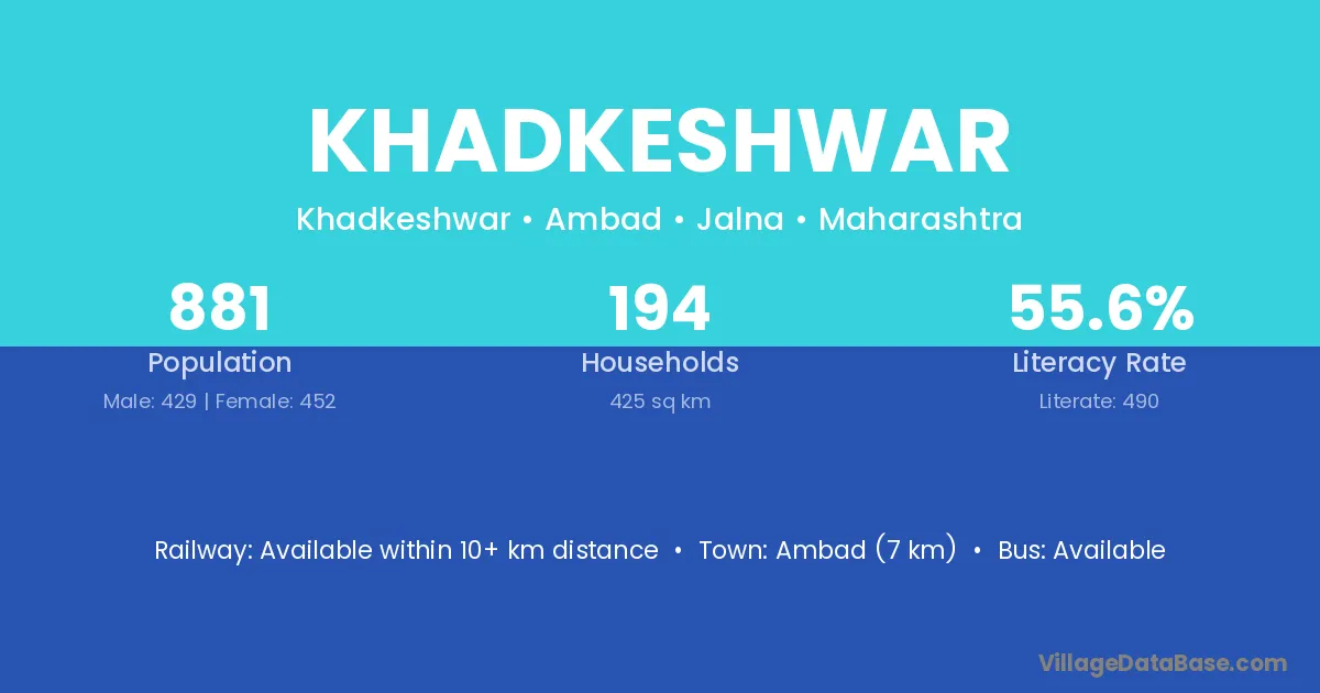 Khadkeshwar village has a total population of 881 people, of which 429 are males and 452 are females.