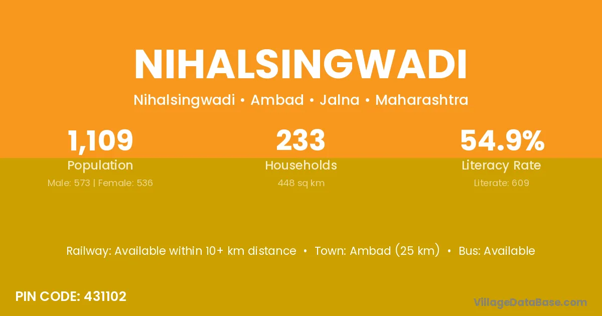 Ambad (25 km) is the nearest town to Nihalsingwadi village for major economic activities and is located approximately 25 km away.