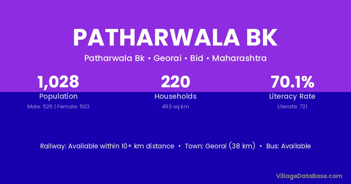 Georai (20 km) is the nearest town to Patharwala Bk village for major economic activities and is located approximately 20 km away.