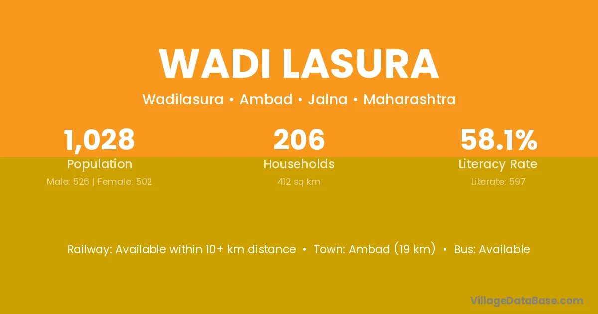 Wadi Lasura village has a total population of 1,028 people, of which 526 are males and 502 are females.