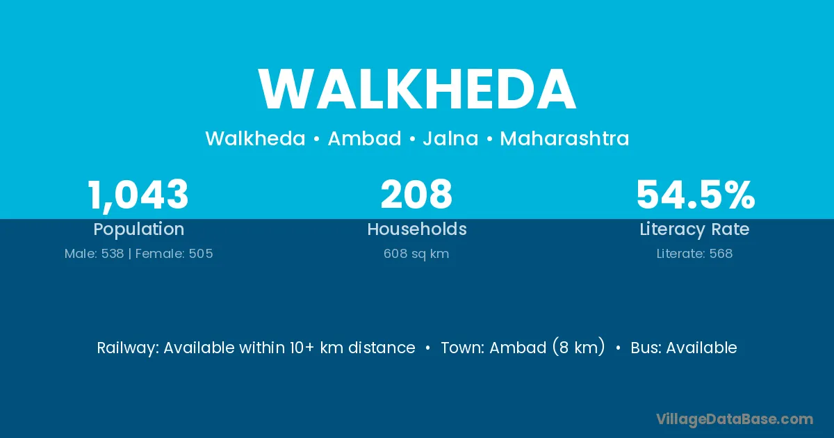 Ambad (8 km) is the nearest town to Walkheda village for major economic activities and is located approximately 8 km away.