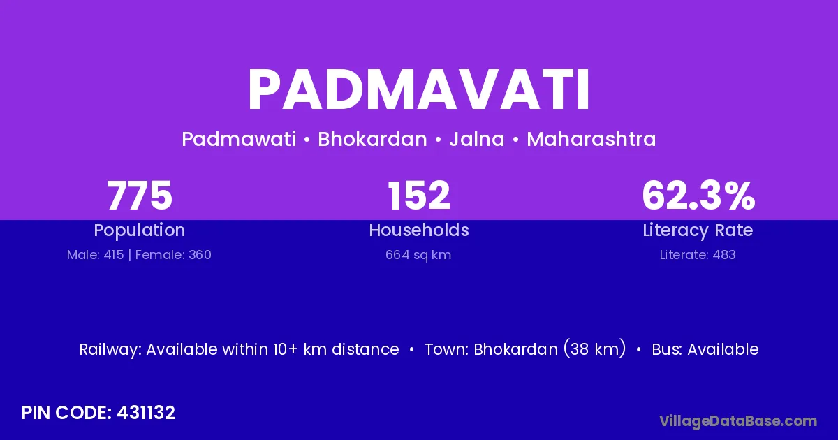 Bhokardan (38 km) is the nearest town to Padmavati village for major economic activities and is located approximately 38 km away.