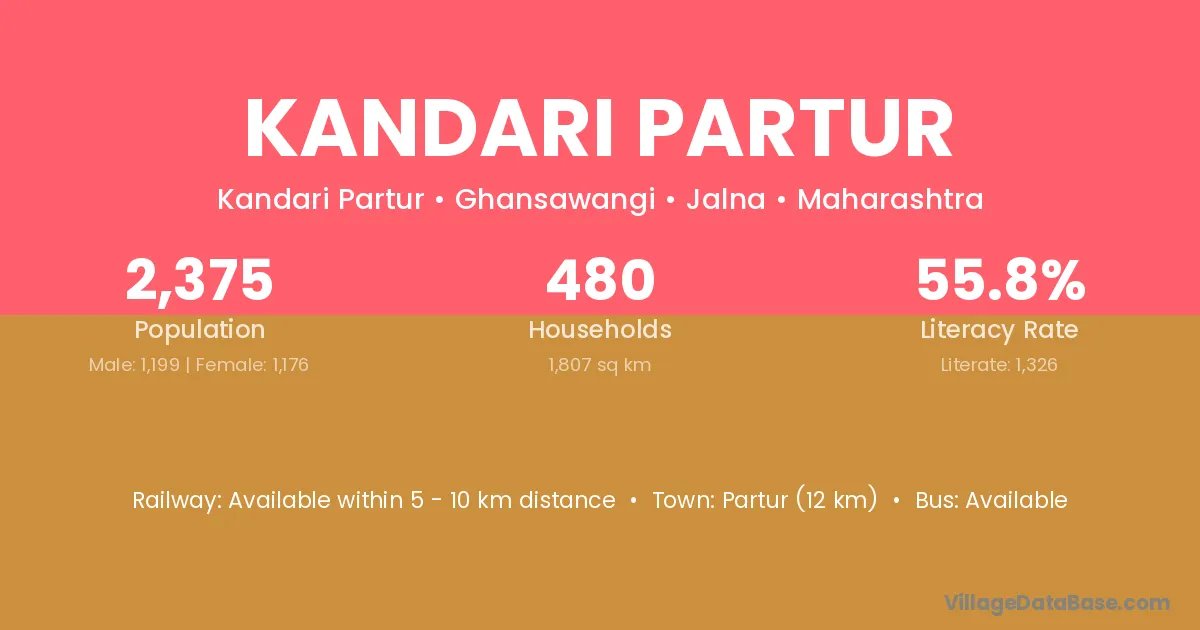Partur (12 km) is the nearest town to Kandari Partur village for major economic activities and is located approximately 12 km away.