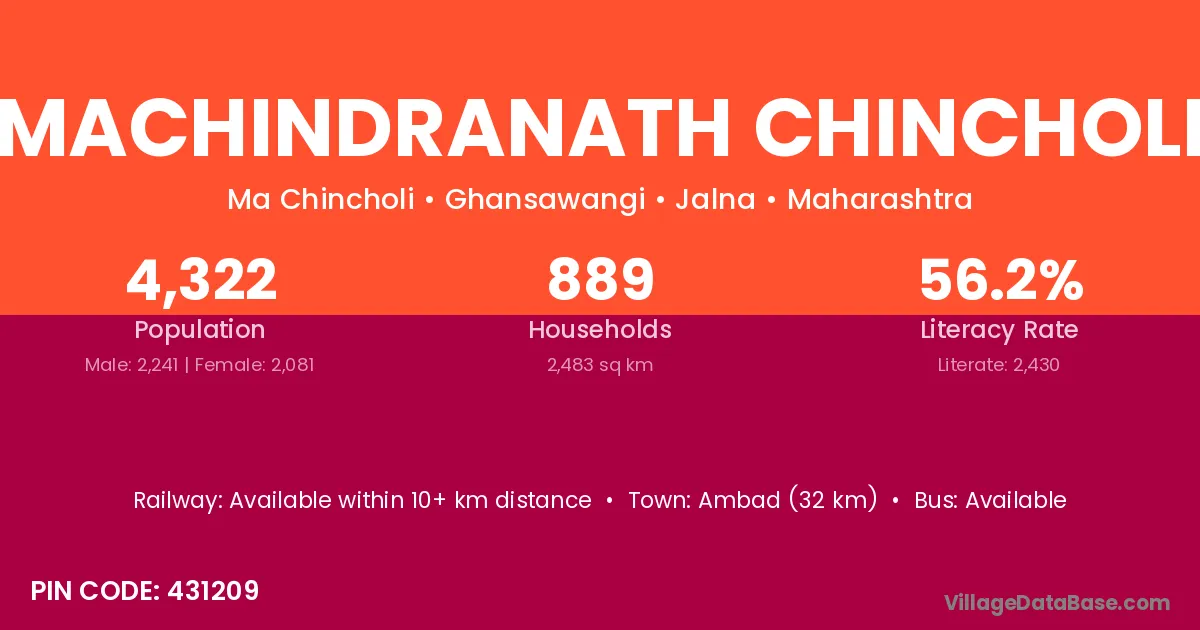 Ambad (32 km) is the nearest town to Machindranath Chincholi village for major economic activities and is located approximately 32 km away.