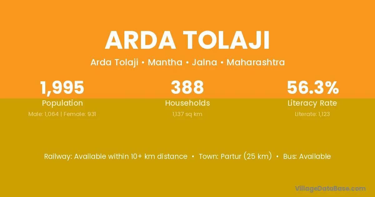 Arda Tolaji village is located in the Mantha Tehsil of the Jalna district in Maharashtra .