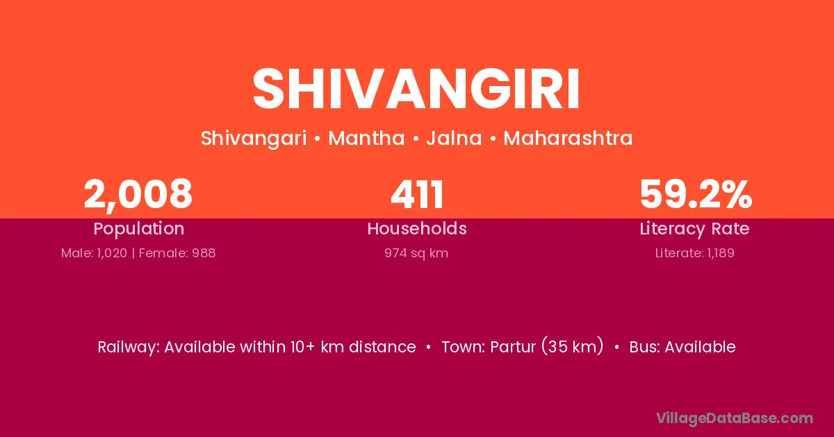 Partur (35 km) is the nearest town to Shivangiri village for major economic activities and is located approximately 35 km away.