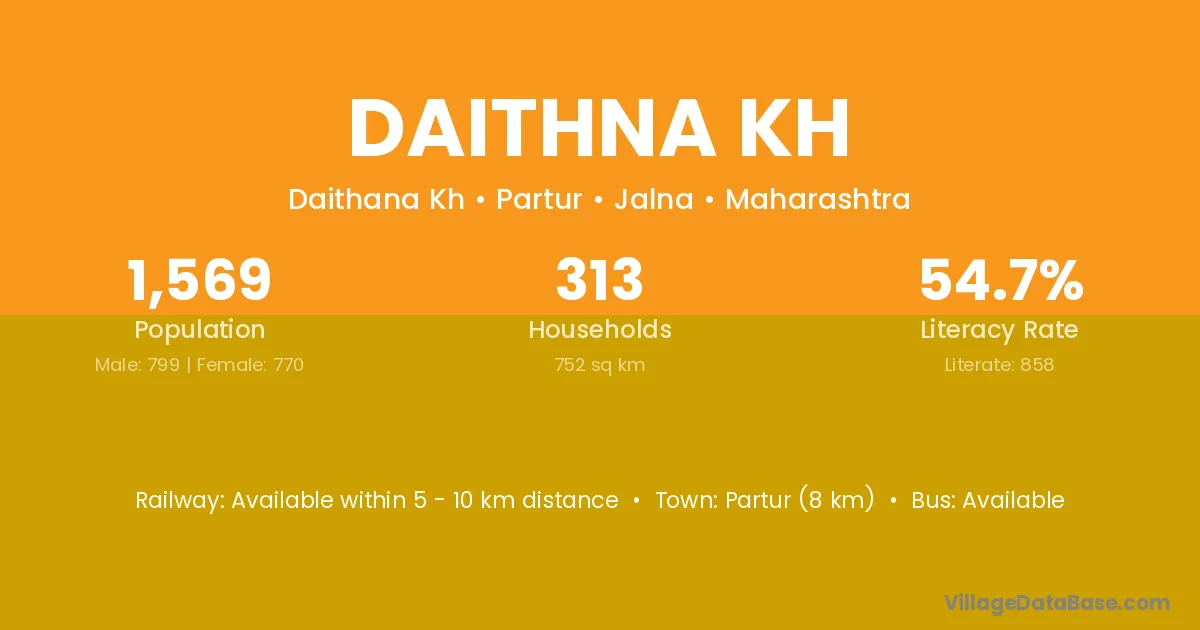 Daithna Kh village has a total population of 1,569 people, of which 799 are males and 770 are females.