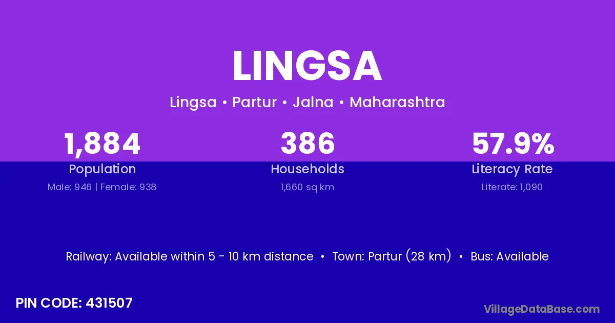 Partur (28 km) is the nearest town to Lingsa village for major economic activities and is located approximately 28 km away.