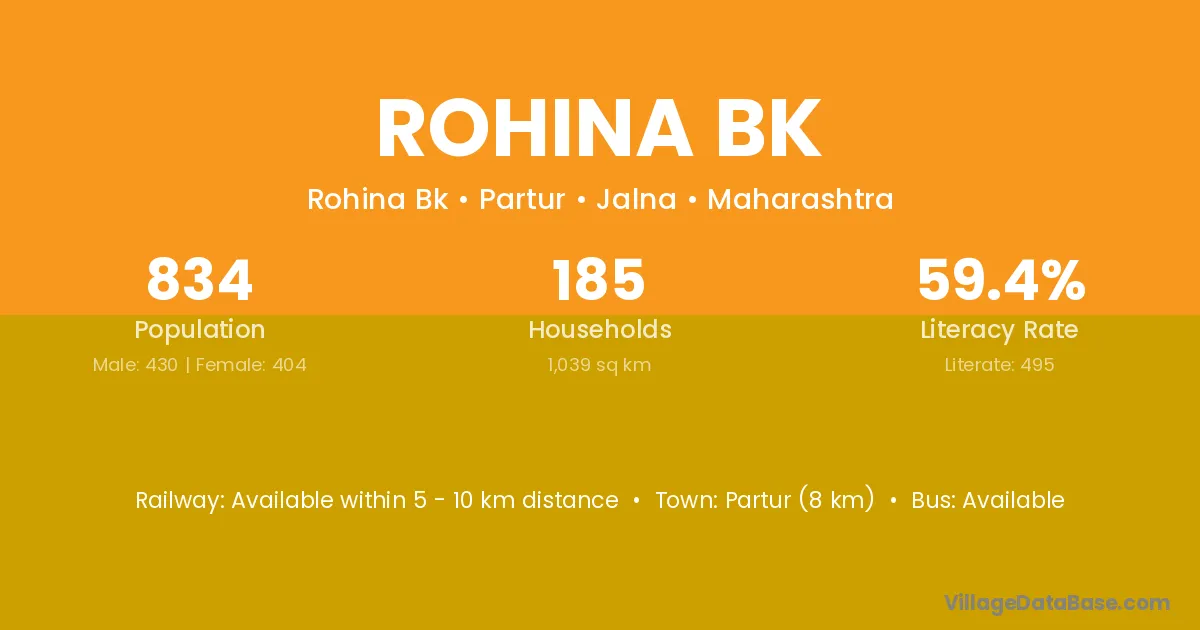 Rohina Bk village has a total population of 834 people, of which 430 are males and 404 are females.