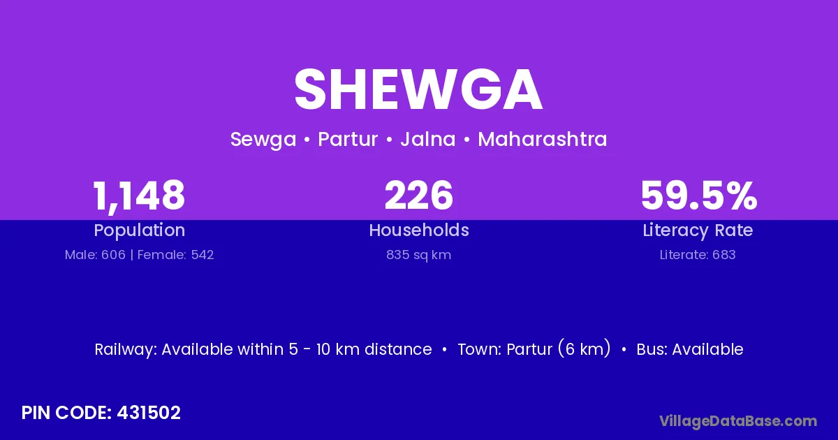Partur (6 km) is the nearest town to Shewga village for major economic activities and is located approximately 6 km away.