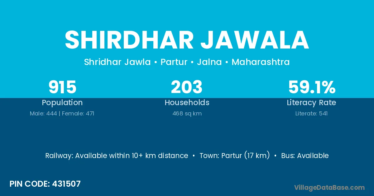 Partur (17 km) is the nearest town to Shirdhar Jawala village for major economic activities and is located approximately 17 km away.