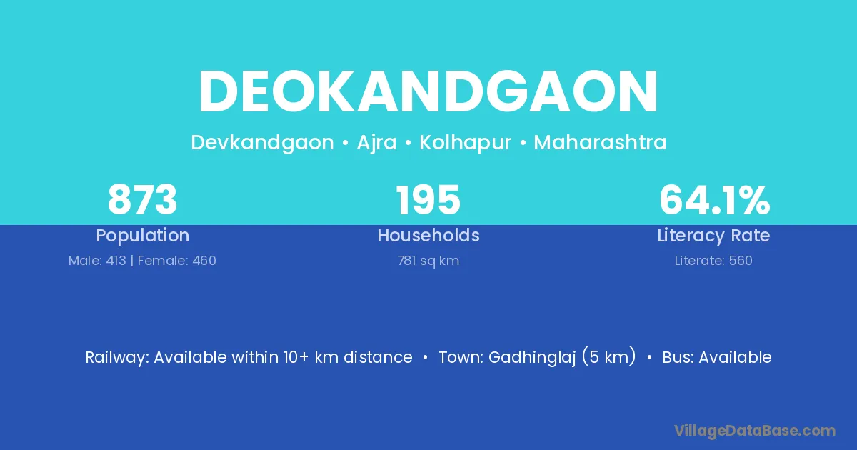Gadhinglaj (5 km) is the nearest town to Deokandgaon village for major economic activities and is located approximately 5 km away.