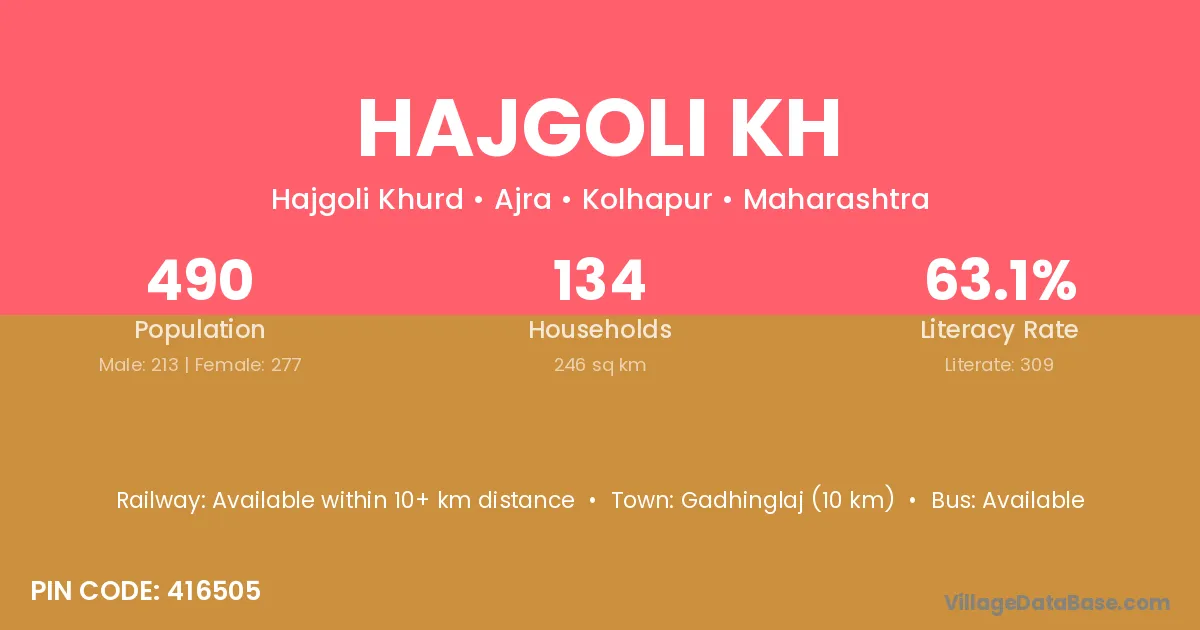 Hajgoli Kh village has a total population of 490 people, of which 213 are males and 277 are females.