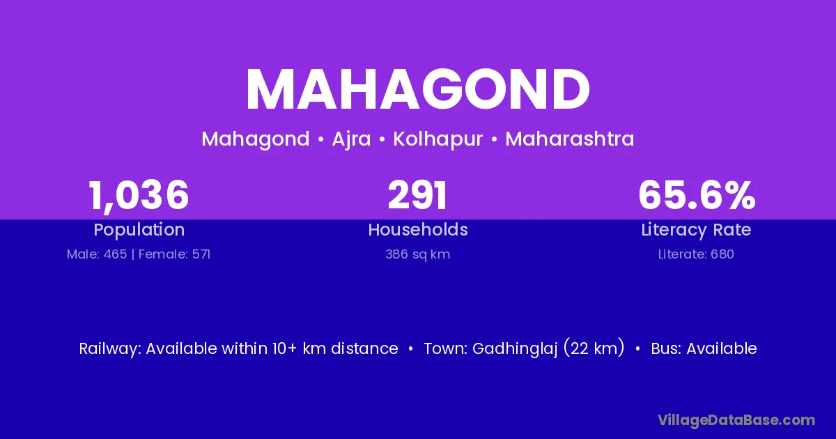 Gadhinglaj (22 km) is the nearest town to Mahagond village for major economic activities and is located approximately 22 km away.