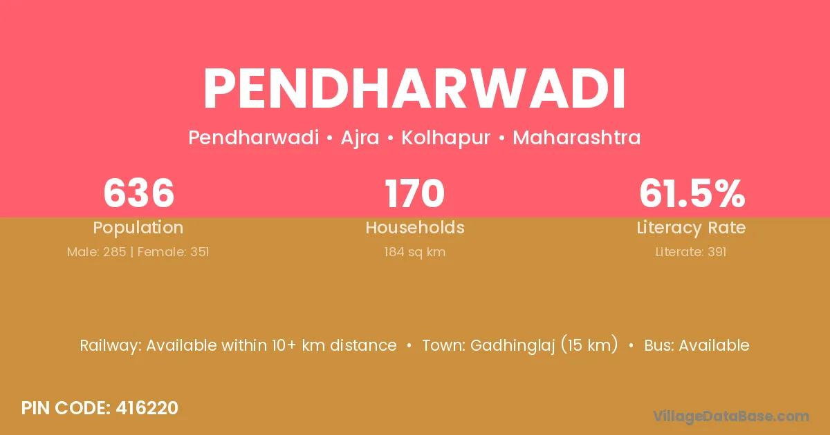 Gadhinglaj (15 km) is the nearest town to Pendharwadi village for major economic activities and is located approximately 15 km away.