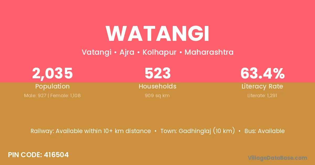 Gadhinglaj (10 km) is the nearest town to Watangi village for major economic activities and is located approximately 10 km away.