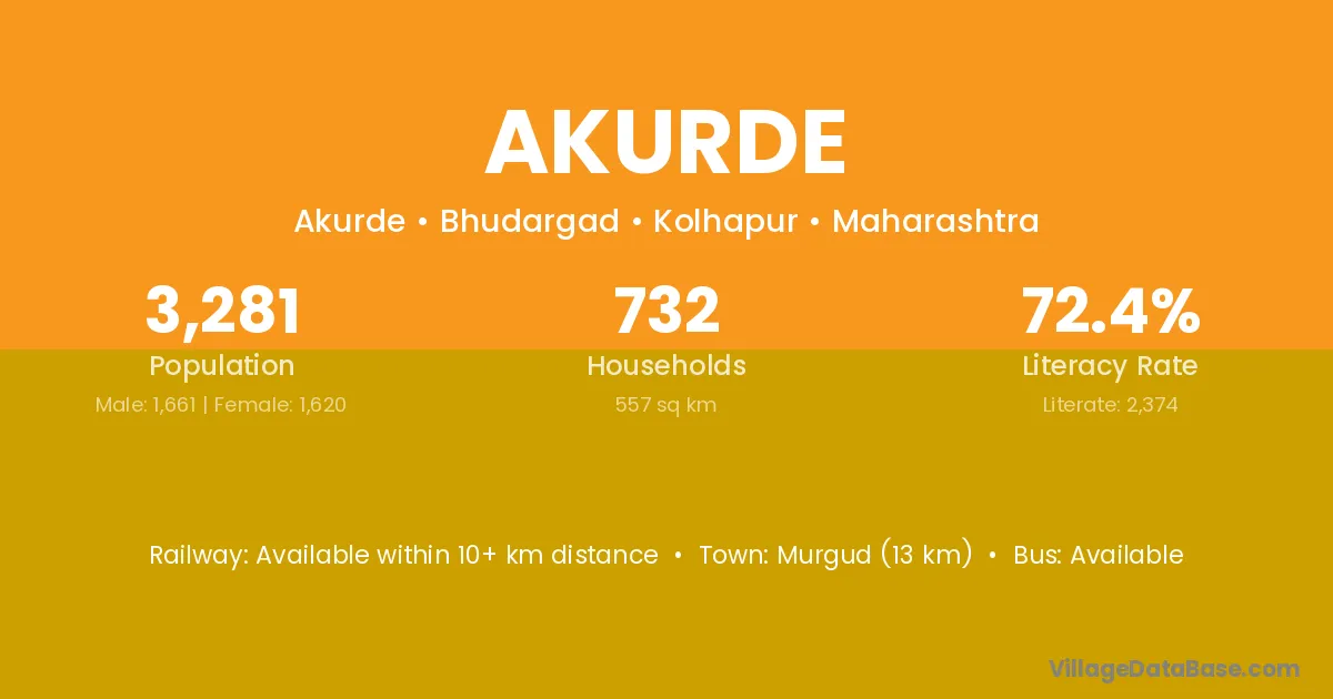 Murgud (13 km) is the nearest town to Akurde village for major economic activities and is located approximately 13 km away.
