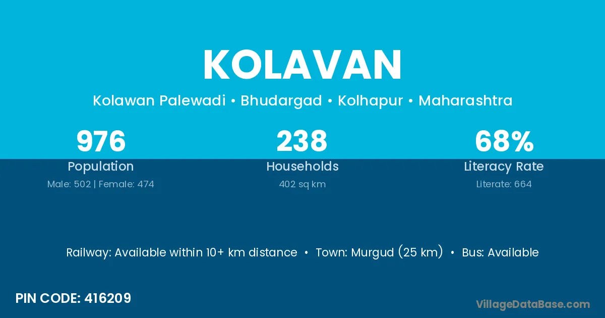 Murgud (25 km) is the nearest town to Kolavan village for major economic activities and is located approximately 25 km away.