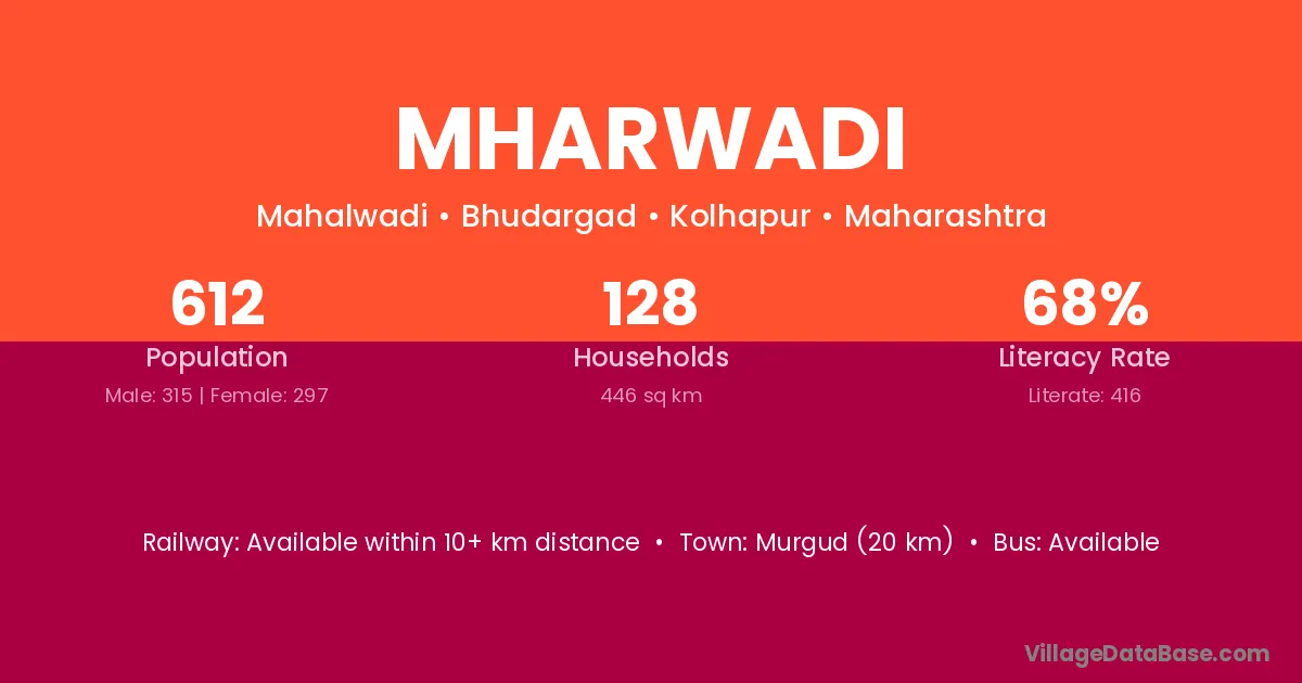 Murgud (20 km) is the nearest town to Mharwadi village for major economic activities and is located approximately 20 km away.