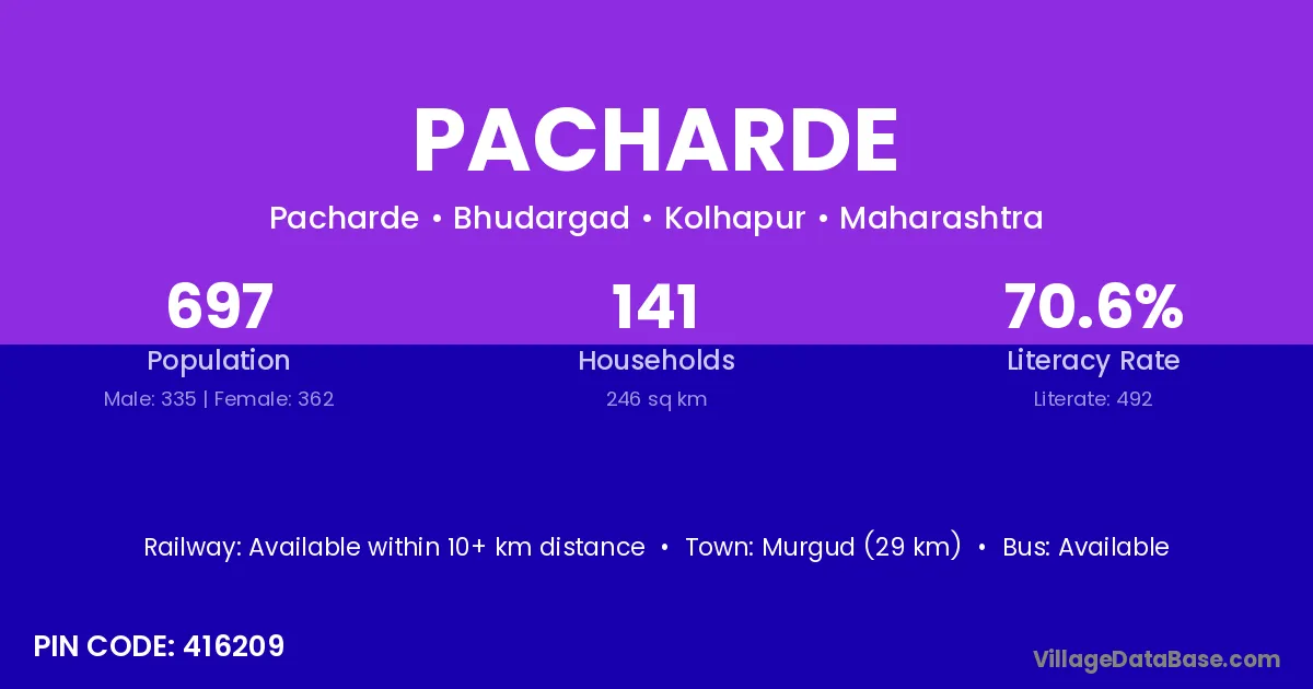 Murgud (29 km) is the nearest town to Pacharde village for major economic activities and is located approximately 29 km away.