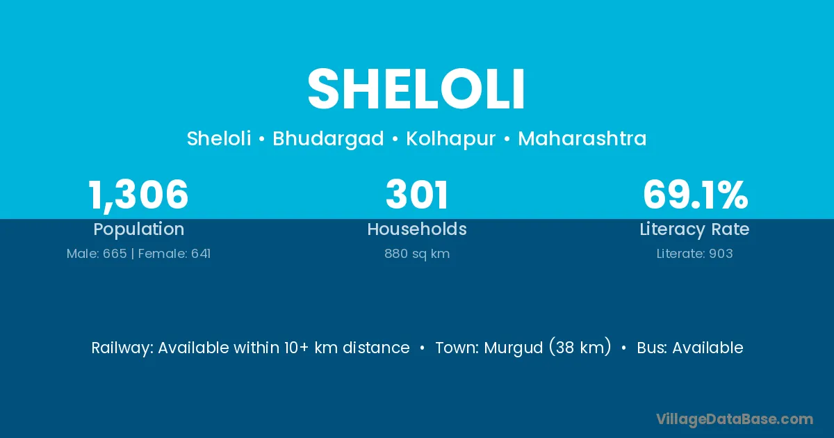 Sheloli village has a total population of 1,306 people, of which 665 are males and 641 are females.