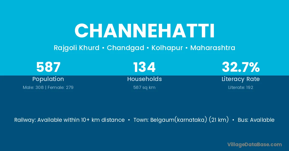 Channehatti village has a total population of 587 people, of which 308 are males and 279 are females.