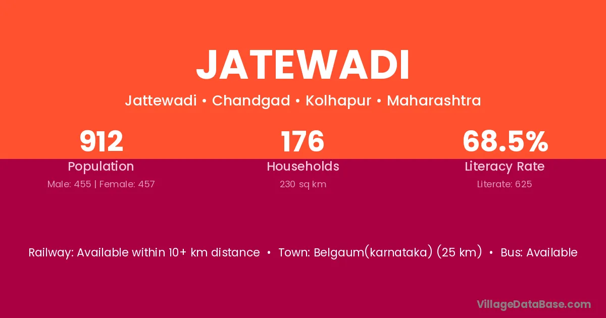 Jatewadi village has a total population of 912 people, of which 455 are males and 457 are females.