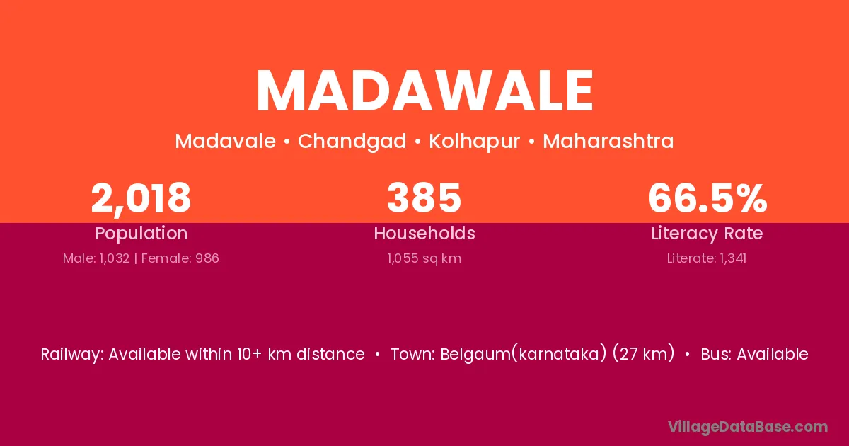 Madawale village has a total population of 2,018 people, of which 1,032 are males and 986 are females.