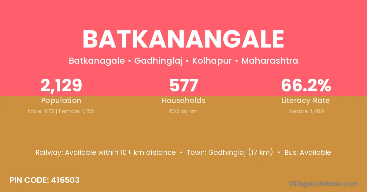 Gadhinglaj (17 km) is the nearest town to Batkanangale village for major economic activities and is located approximately 17 km away.