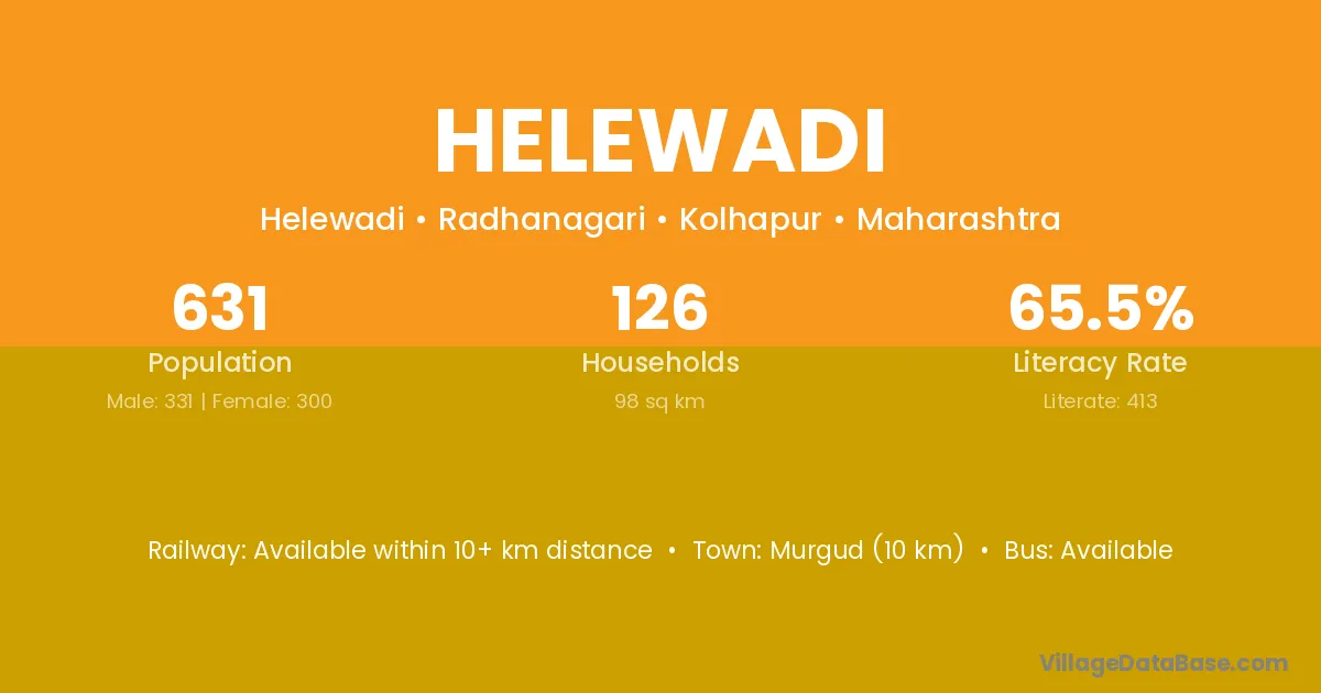 Gadhinglaj (20 km) is the nearest town to Helewadi village for major economic activities and is located approximately 20 km away.