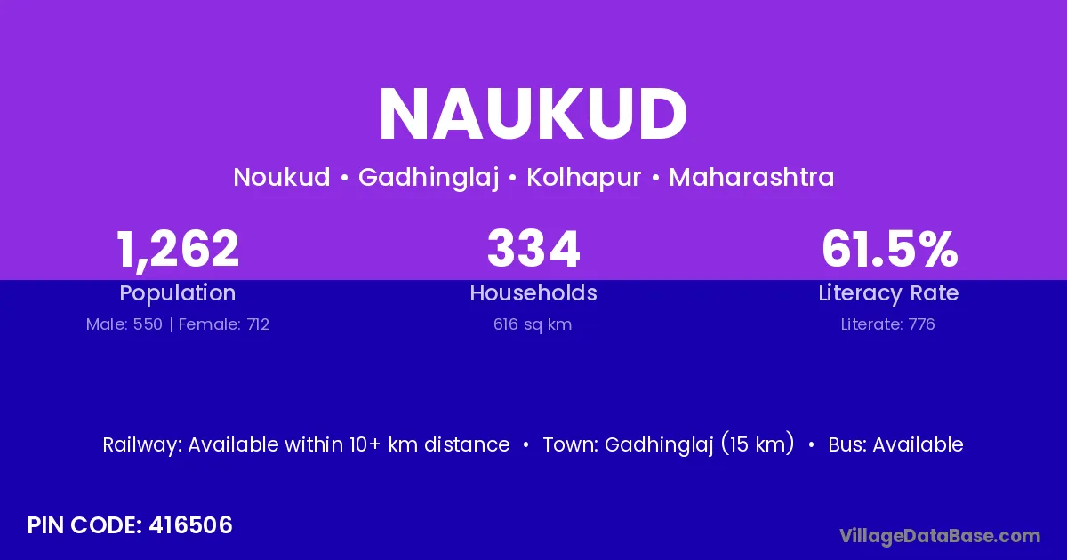 Gadhinglaj (15 km) is the nearest town to Naukud village for major economic activities and is located approximately 15 km away.