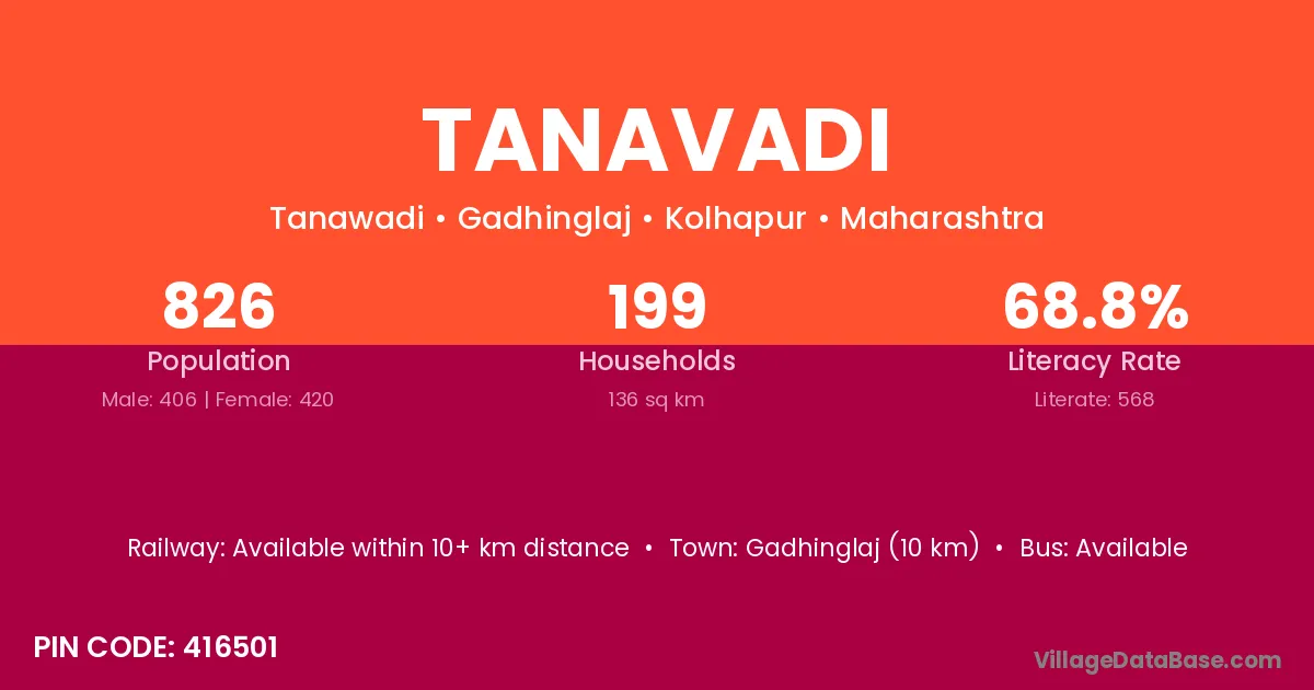Gadhinglaj (10 km) is the nearest town to Tanavadi village for major economic activities and is located approximately 10 km away.
