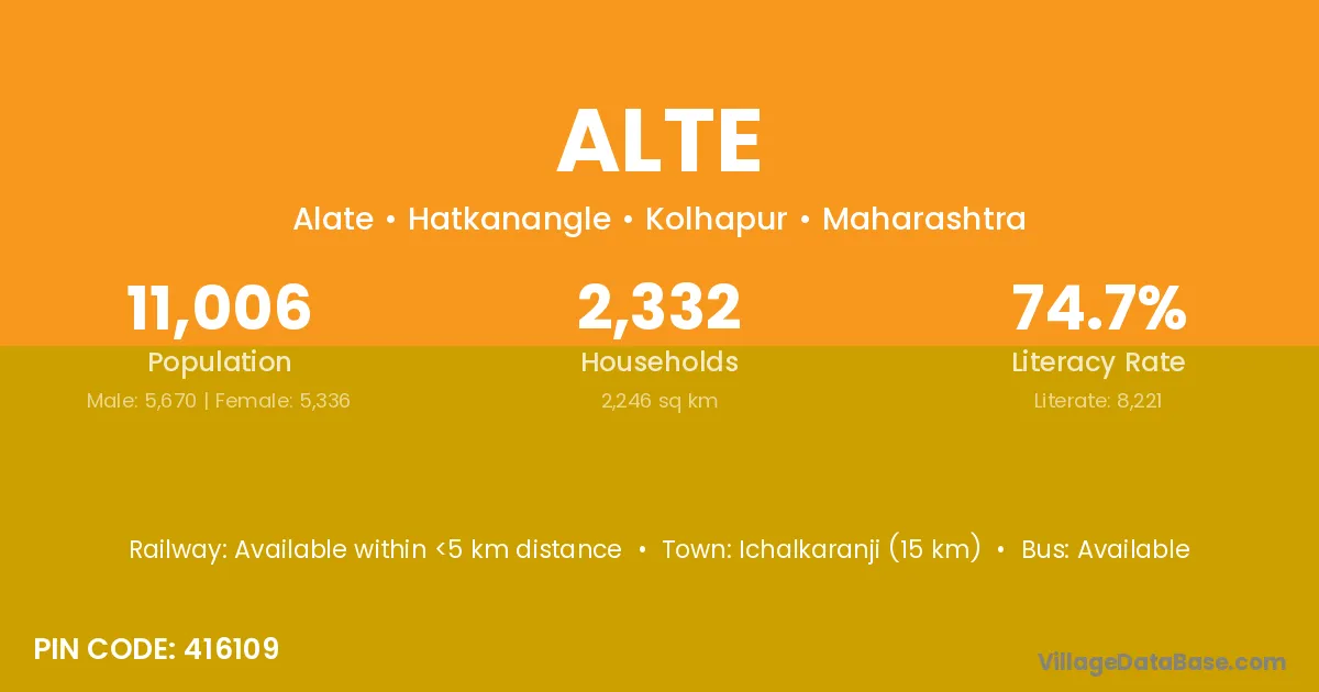 Ichalkaranji (15 km) is the nearest town to Alte village for major economic activities and is located approximately 15 km away.