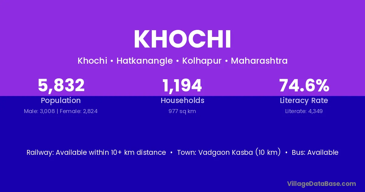 Vadgaon Kasba (10 km) is the nearest town to Khochi village for major economic activities and is located approximately 10 km away.