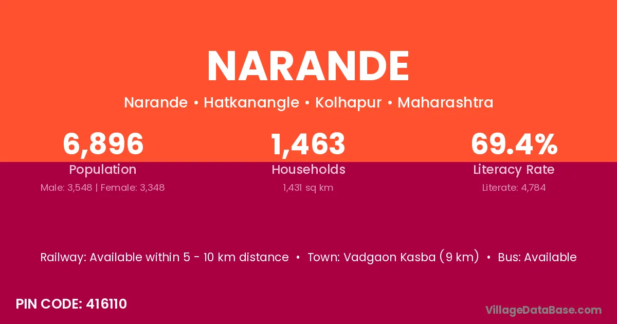 Vadgaon Kasba (9 km) is the nearest town to Narande village for major economic activities and is located approximately 9 km away.