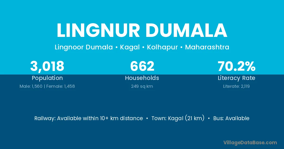 Kagal (21 km) is the nearest town to Lingnur Dumala village for major economic activities and is located approximately 21 km away.