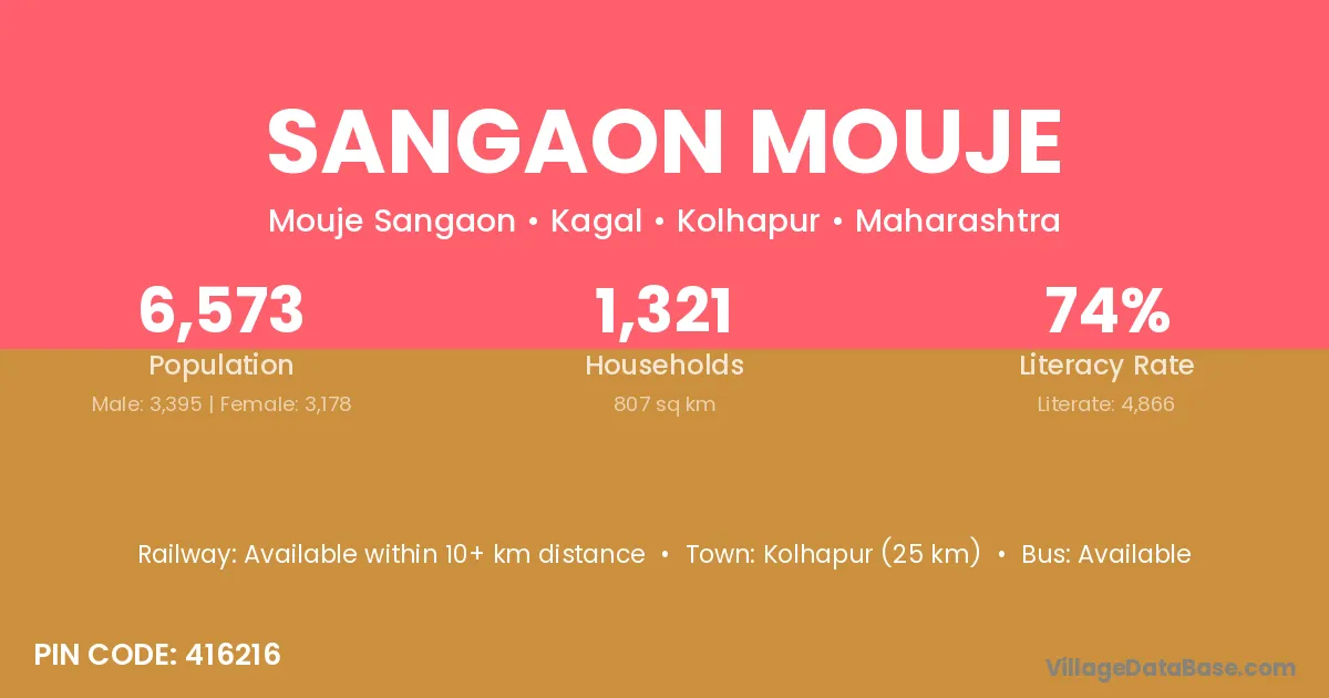 Kolhapur (25 km) is the nearest town to Sangaon Mouje village for major economic activities and is located approximately 25 km away.