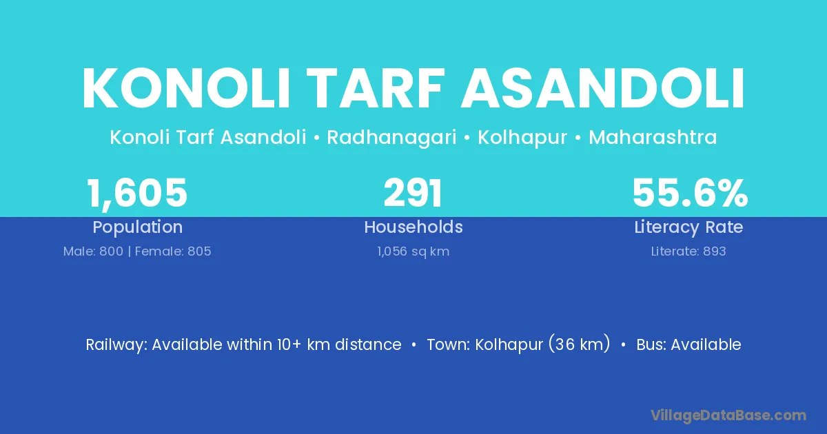 Konoli Tarf Asandoli village has a total population of 1,605 people, of which 800 are males and 805 are females.