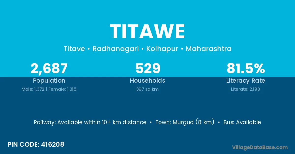 Murgud (8 km) is the nearest town to Titawe village for major economic activities and is located approximately 8 km away.