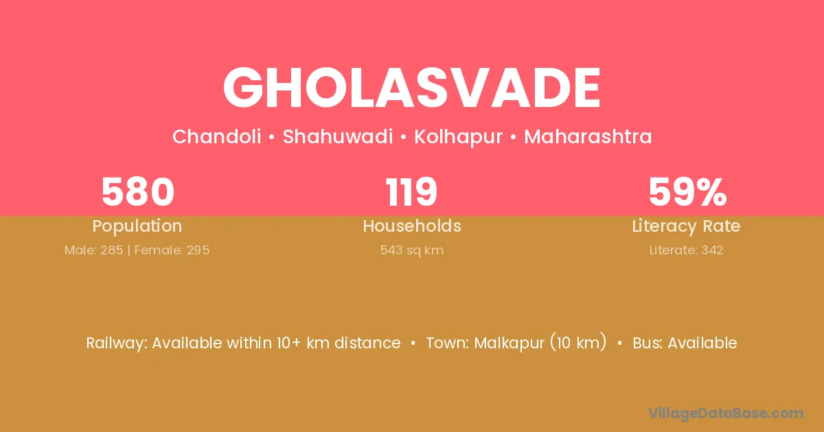 Gholasvade village has a total population of 580 people, of which 285 are males and 295 are females.