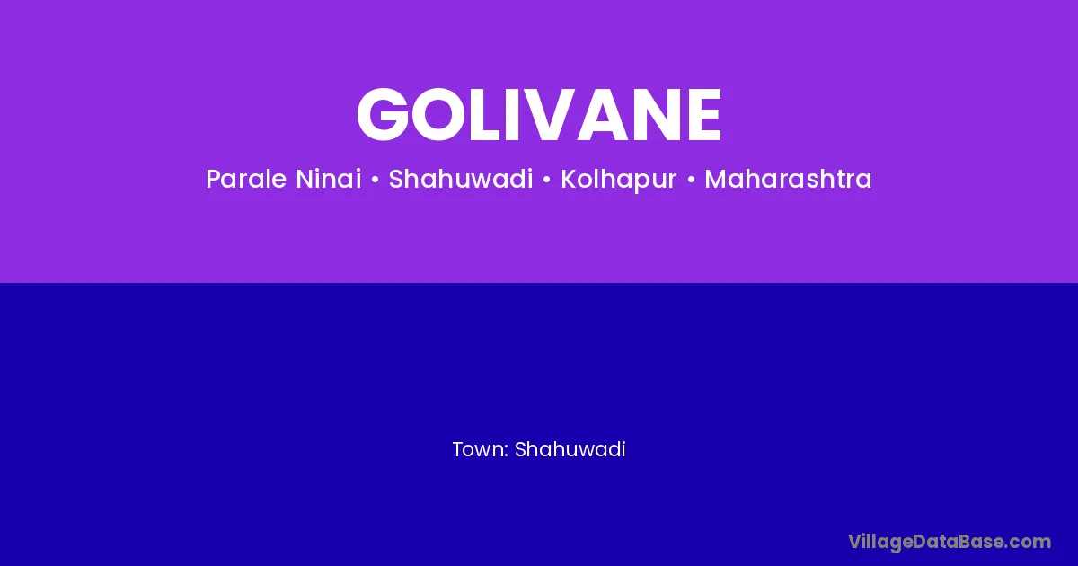 Shahuwadi is the nearest town to Golivane village for major economic activities