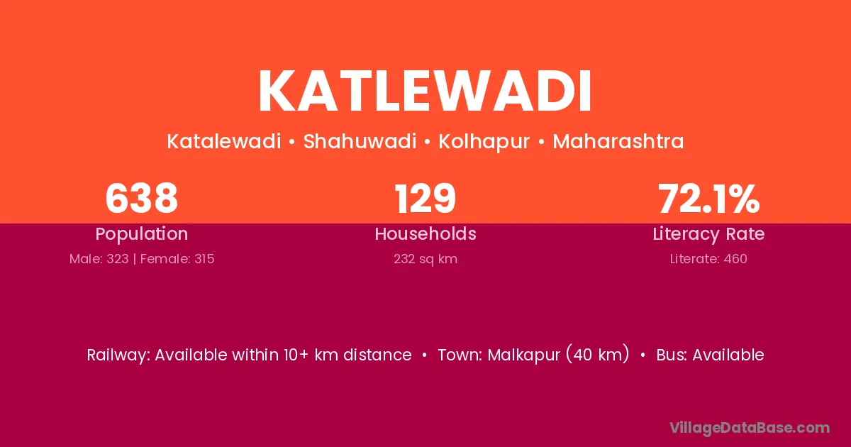 Katlewadi village has a total population of 638 people, of which 323 are males and 315 are females.