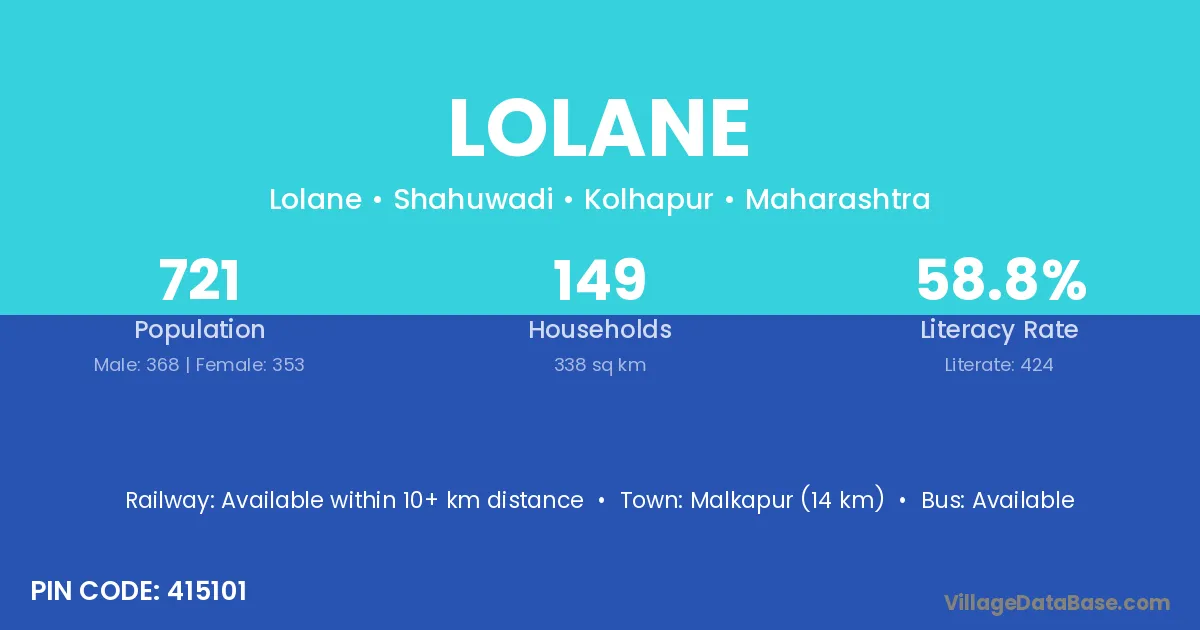 Malkapur (14 km) is the nearest town to Lolane village for major economic activities and is located approximately 14 km away.