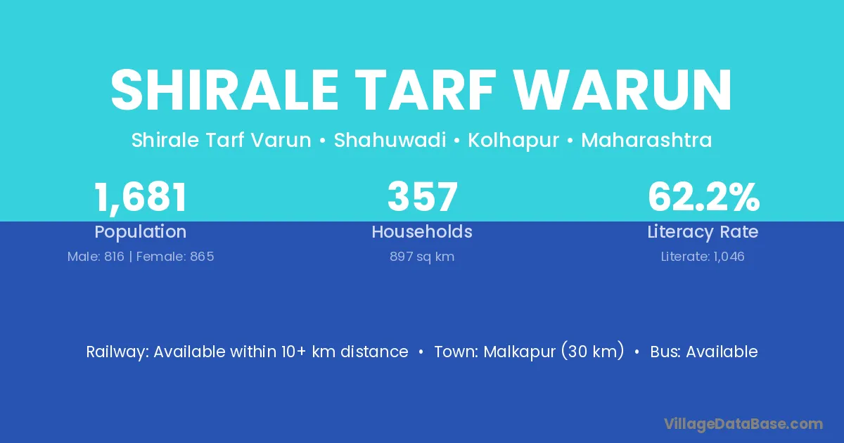 Shirale Tarf Warun village has a total population of 1,681 people, of which 816 are males and 865 are females.